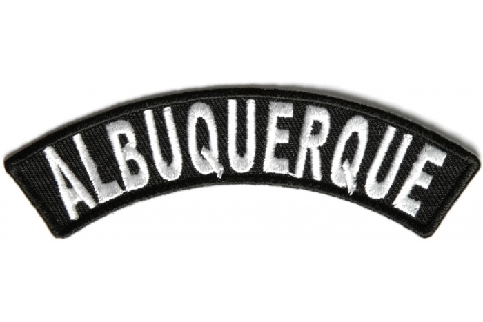 Albuquerque Patch measures 4 inches wide and is about an inch tall. Embroidered in white over black this city name rocker is designed to be sewn or ironed on the shoulders of your jacket or the front of your vest. Be proud of your local town, we've got quite a selection of different cities and we will add more in the future. We only stock these in small sizes, we do not have them available in large back patches. You can however purchase large blank rockers from us and have them embroidered at your local mall (usually you'll find someone at mall's doing embroidery on to hats, they can also embroider over our blank patches. We can make custom patches given you want at least 20 pieces of a design.
