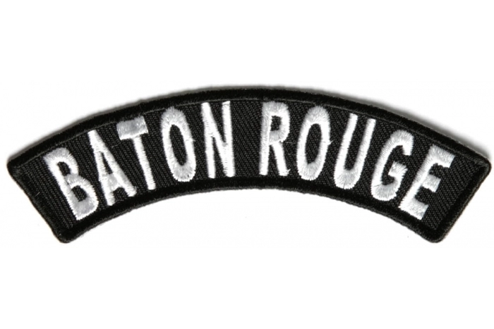 Baton Rouge Patch measures 4 inches wide and is about an inch tall. Embroidered in white over black this city name rocker is designed to be sewn or ironed on the shoulders of your jacket or the front of your vest. Be proud of your local town, we've got quite a selection of different cities and we will add more in the future. We only stock these in small sizes, we do not have them available in large back patches. You can however purchase large blank rockers from us and have them embroidered at your local mall (usually you'll find someone at mall's doing embroidery on to hats, they can also embroider over our blank patches. We can make custom patches given you want at least 20 pieces of a design.