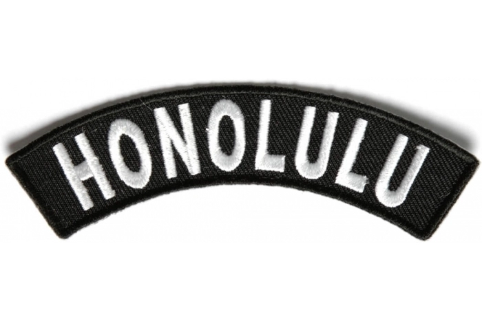 Honolulu Patch measures 4 inches wide and is about an inch tall. Embroidered in white over black this city name rocker is designed to be sewn or ironed on the shoulders of your jacket or the front of your vest. Be proud of your local town, we've got quite a selection of different cities and we will add more in the future. We only stock these in small sizes, we do not have them available in large back patches. You can however purchase large blank rockers from us and have them embroidered at your local mall (usually you'll find someone at mall's doing embroidery on to hats, they can also embroider over our blank patches. We can make custom patches given you want at least 20 pieces of a design.