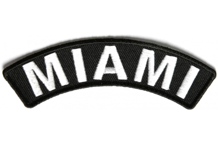 Miami Patch measures 4 inches wide and is about an inch tall. Embroidered in white over black this city name rocker is designed to be sewn or ironed on the shoulders of your jacket or the front of your vest. Be proud of your local town, we've got quite a selection of different cities and we will add more in the future. We only stock these in small sizes, we do not have them available in large back patches. You can however purchase large blank rockers from us and have them embroidered at your local mall (usually you'll find someone at mall's doing embroidery on to hats, they can also embroider over our blank patches. We can make custom patches given you want at least 20 pieces of a design.