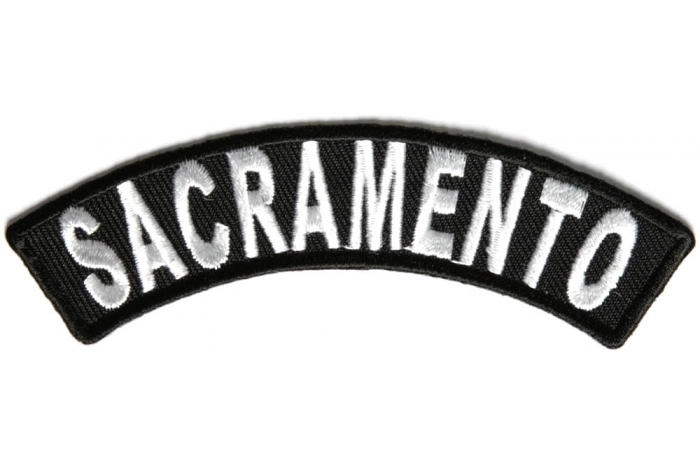 Sacramento Patch measures 4 inches wide and is about an inch tall. Embroidered in white over black this city name rocker is designed to be sewn or ironed on the shoulders of your jacket or the front of your vest. Be proud of your local town, we've got quite a selection of different cities and we will add more in the future. We only stock these in small sizes, we do not have them available in large back patches. You can however purchase large blank rockers from us and have them embroidered at your local mall (usually you'll find someone at mall's doing embroidery on to hats, they can also embroider over our blank patches. We can make custom patches given you want at least 20 pieces of a design.