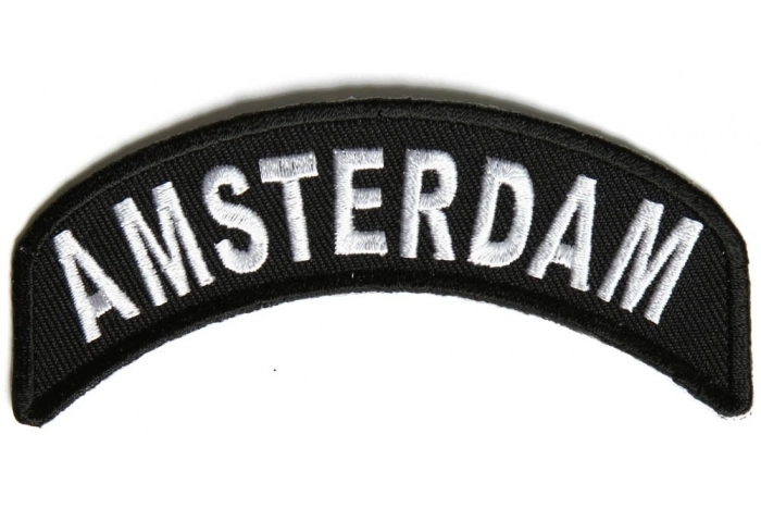 Amsterdam City Patch measures 4x1.75 inches and is Embroidered in Black / White. The Small Patch can be sewn on or ironed on to clothing such as Denim or Leather Jackets, Vests, Hats, Back Packs, Shirts. Features plastic backing and embroidered die cut borders.