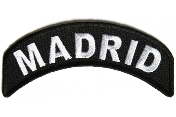 Madrid City Patch measures 4x1.75 inches and is Embroidered in Black / White. The Small Patch can be sewn on or ironed on to clothing such as Denim or Leather Jackets, Vests, Hats, Back Packs, Shirts. Features plastic backing and embroidered die cut borders.