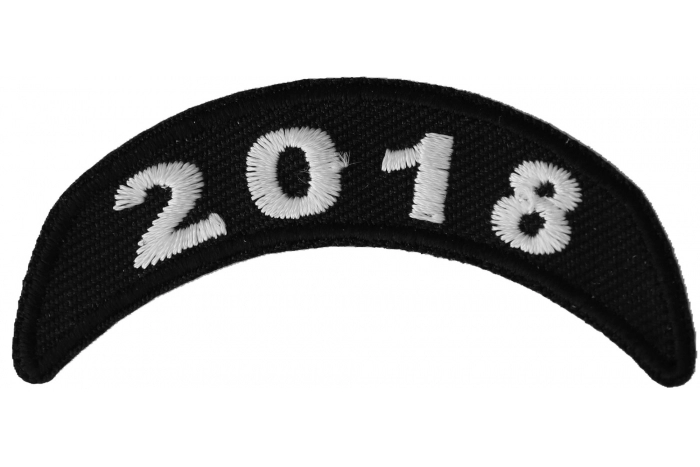2018 Black and White Rocker Patch measures 2.5x1 inches and is Embroidered in Black / White. The Small Patch can be sewn on or ironed on to clothing such as Denim or Leather Jackets, Vests, Hats, Back Packs, Shirts. Features plastic backing and embroidered die cut borders.