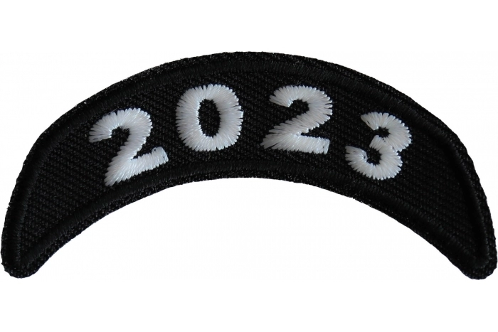Here at The Cheap Place, we sell all sorts of embroidered patches for bikers. You don't have to be a biker to love our stuff, so no worries about that. But some of our inventory is really designed around them. Take this particular patch. It is an upper rocker featuring the year 2023 in white, against a black background.