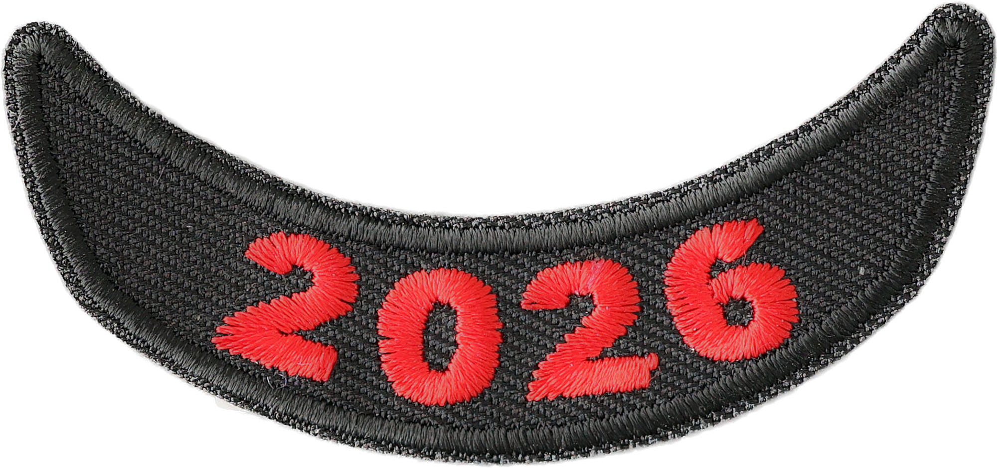 2026 Lower Rocker Red Year Patch measures 2.5x1 inches and is Embroidered in Black / Red. The patch can be sewn on to Leather Biker Jackets, Vests or Chaps. The patch can also be ironed on to Shirts, Hats or Denim material such as Jeans. Features plastic iron on backing and clean laser cut embroidered borders. Japanese made iron on glue requires temperature between 270-290 Degrees Fahrenheit. Use a heat press for 30 seconds to adhere the patch permanently to your clothing. Using a regular household iron will probably not be as permanent as one hopes. If possible we recommend you sew on your patches for a more durable application. Never iron on patches to Leather or Nylon materials.