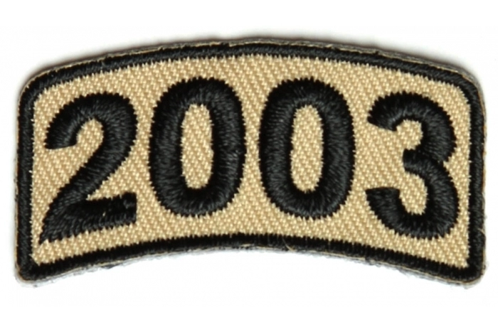 Black Desert Year Rocker Patch 2003 measures 1.6x0.75 inches and is Embroidered in Black / Tan. The Small Patch can be sewn on or ironed on to clothing such as Denim or Leather Jackets, Vests, Hats, Back Packs, Shirts. Features plastic backing and embroidered die cut borders.