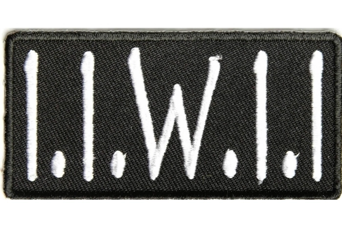 I.I.W.I.I. Patch measures 3x1.5 inches. It is what it is. Embroidered in white over black this is an iron on patch.