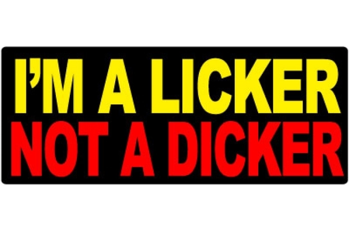 This funny patch that says "I'm a licker not a dicker". Measures 4x1.5 inches. Embroidered in red and yellow. There is also another version of it that says I'm a dicker not a licker.
