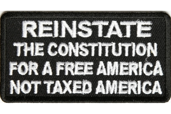 The constitution was signed and adopted to give we the people the freedom we fought for. Years later slowly but surely the government we supposedly vote in has taken away our freedom and sent us back in time to our days of being government slaves. It's time to Reinstate the constitution, for a free America! Not Taxed America. I am sick of working to pay for my freedom. The iron on patch is embroidered in white over black and measures 3x1.5 inches. The patch features die cut borders for a clean look. You can sew it on to your leather vest or jacket, press it on to hats, shirts, jeans or even canvas belts. Start making your clothes unique with a patch and get some attention.