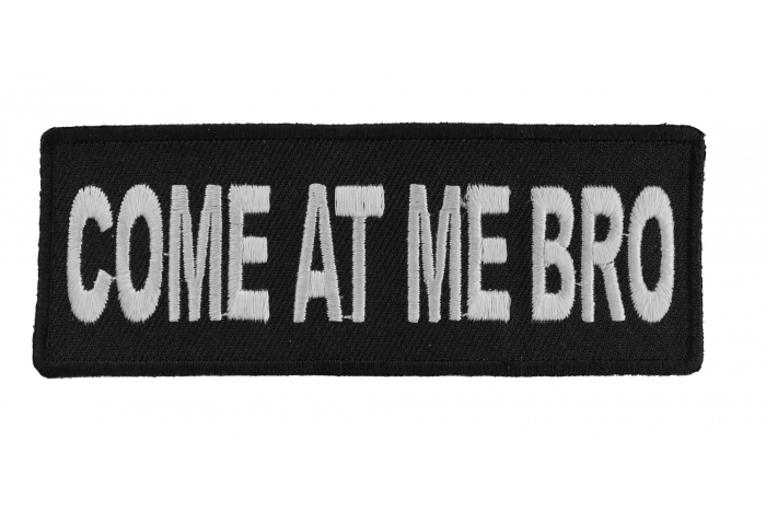 Come at me Bro patch is embroidered and measures 4x1.5 inch. Apply to your clothing by either ironing on or sewing it on. Please do not iron on patches to leather or nylon material. The patch features a nice embroidered die cut border making it easy to sew on when ironing on is not an option. Please remember using a household iron will not produce professional results. Both heat and pressure is required to adhere an iron on patch properly to a garment. This patch is also available for wholesale. Apply for wholesale patches to get the cheapest possible price.