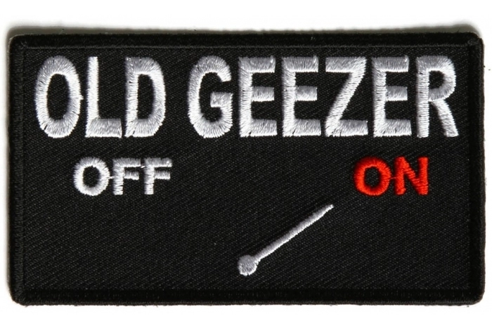 Old Geezer Mode On Patch measures 3.5x2 inches and is Embroidered in Black / White / Red. The Small Patch can be sewn on or ironed on to clothing such as Denim or Leather Jackets, Vests, Hats, Back Packs, Shirts. Features plastic backing and embroidered die cut borders.