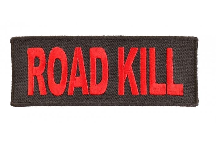 Road Kill patch is a small embroidered emblem measuring 4x1.5 inch. Apply to your clothing by either ironing on or sewing it on. Please do not iron on patches to leather jackets, vests or bags or nylon material. The patch features a nice embroidered die cut border making it easy to sew on when ironing on is not an option. Please remember using a household iron will not produce professional results. Both heat and pressure is required to adhere an iron on patch properly to your clothing.