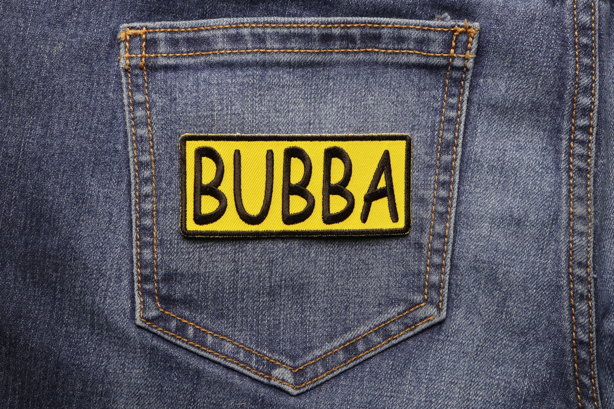 Bubba Patch is embroidered in Yellow / Black. Measures 3.5x1.5 inches. The patch can be sewn or ironed on. Do not iron on patches to leather or nylon material. Buy them cheaper with a wholesale account. Resell them on Ebay.