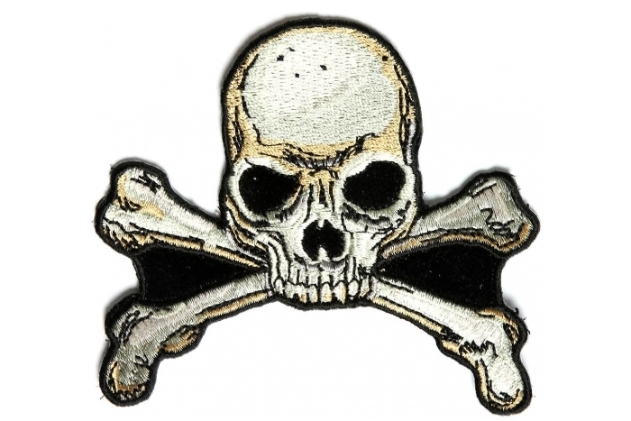 We decided to call it the haunted skull patch. Comes in two sizes. This is the small version measuring 4x3.5 inches. Embroidered in tones of grey and brown over black velvet patch.