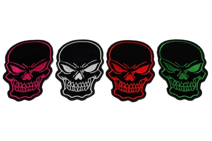 - Black Skulls with Red White Green and Pink Embroidery set of 4 Patches