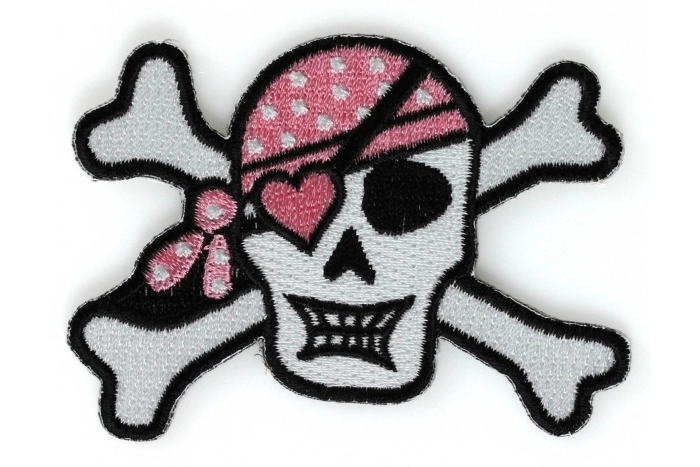 Cute Heart Pink Bandana Skull and Cross Bones Patch measures 3x2.2 inches and is Embroidered in Black / White / Pink. The Small Patch can be sewn on or ironed on to clothing such as Denim or Leather Jackets, Vests, Hats, Back Packs, Shirts. Features plastic backing and embroidered die cut borders.