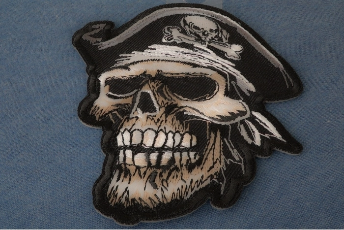 Dead Skull Pirate Patch measures 3.25x4 inches and is Embroidered in Black / White. The patch can be sewn on to Leather Biker Jackets, Vests or Chaps. The patch can also be ironed on to Shirts, Hats or Denim material such as Jeans. Features plastic iron on backing and clean laser cut embroidered borders. Japanese made iron on glue requires temperature between 270-290 Degrees Fahrenheit. Use a heat press for 30 seconds to adhere the patch permanently to your clothing. Using a regular household iron will probably not be as permanent as one hopes. If possible we recommend you sew on your patches for a more durable application. Never iron on patches to Leather or Nylon materials.