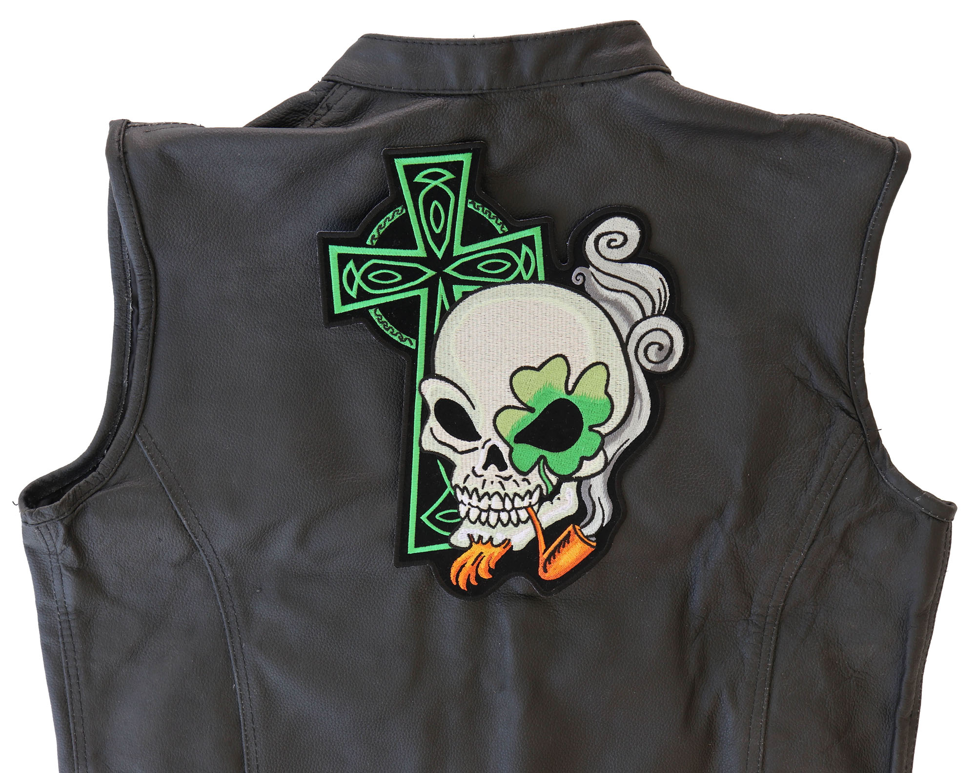 Irish Cross Skull Goaty and Pipe Patch - 9x10.5 inch