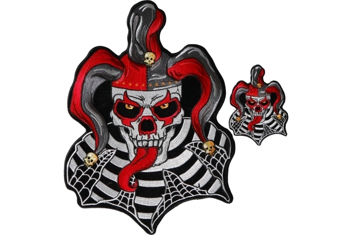 - Jester Skull Patch Set of Small and Large in Red and Gray