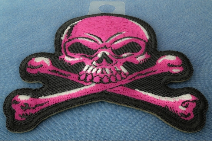 Pink Skull Patch measures 3x3 inches and is Embroidered in Black / Pink. The Small can be sewn on or ironed on to clothing. The Pink Skull Patch features plastic iron on backing and clean laser cut embroidered borders. This skull design came out so nice that we just recently added 2 more colors including this pink version. Also available in a dark gray, off white and a red version as well.
