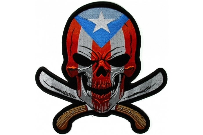 Machete Puerto Rican Skull Embroidered Iron on Patch - 9x9 inch