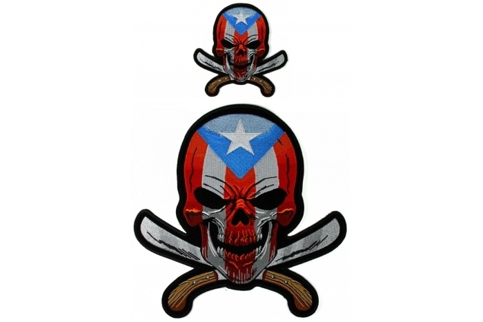 Puerto Rico Flag Skull With Machetes Small and Large Patch Set