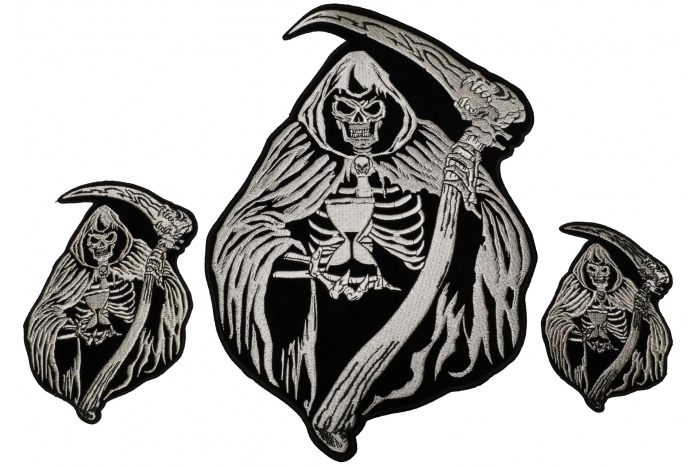 Reaper Skull Small Medium and Large set of 3 Patches - 4.5 - 12 inches