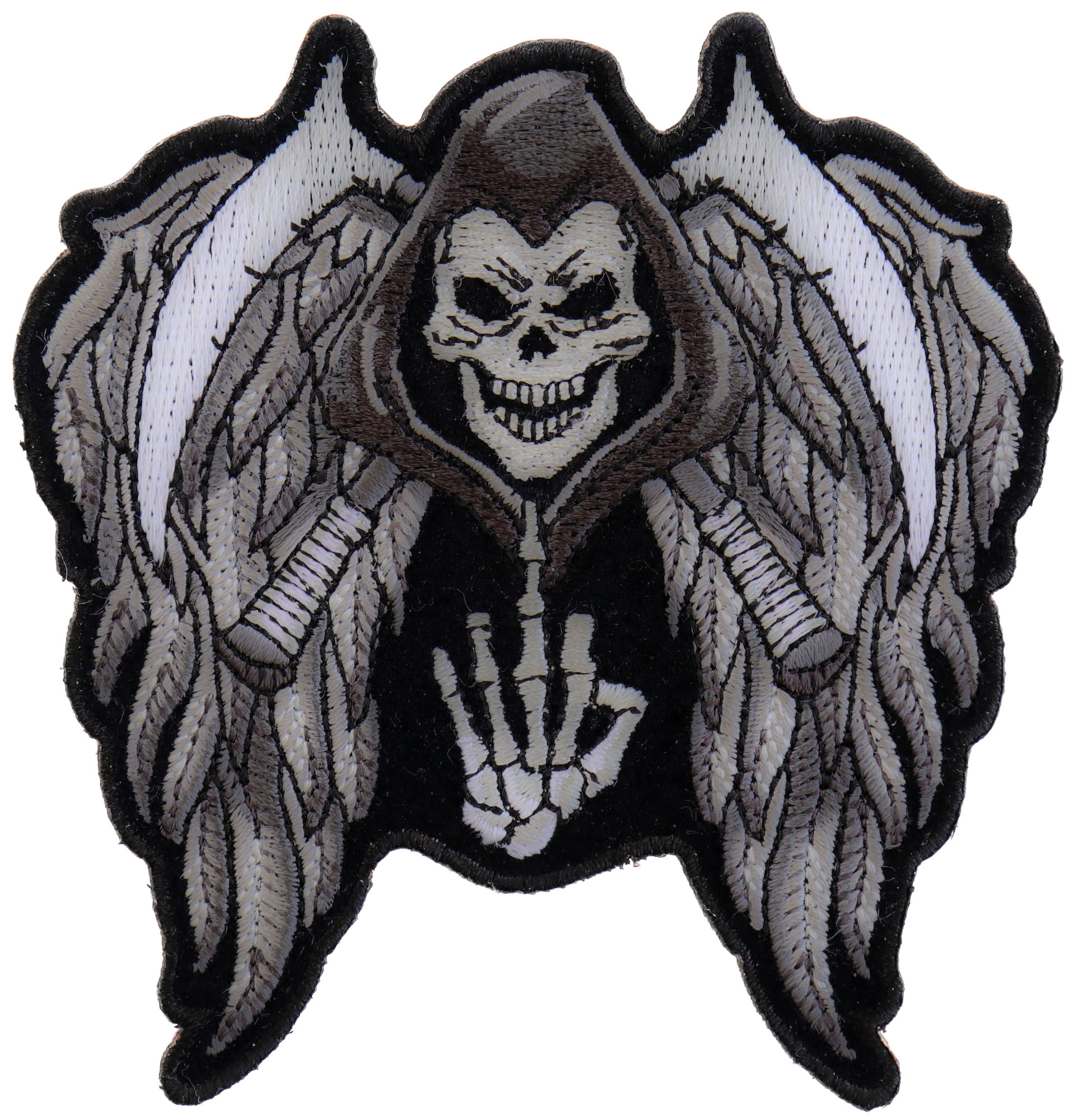 Reaper Skull Wings Middle Finger Patch - 3.9x4 inch