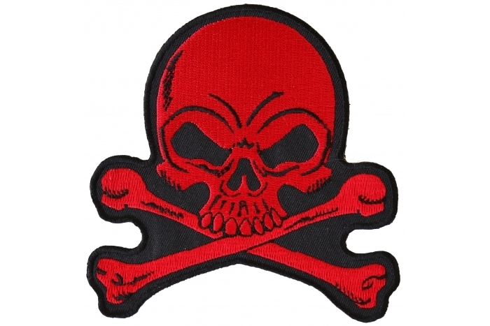 Red Skull and Cross Bones Patch measures 4x4 inches and is Embroidered in Black / Red. The Small Patch can be sewn on or ironed on to clothing such as Denim or Leather Jackets, Vests, Hats, Back Packs, Shirts. Features plastic backing and embroidered die cut borders.