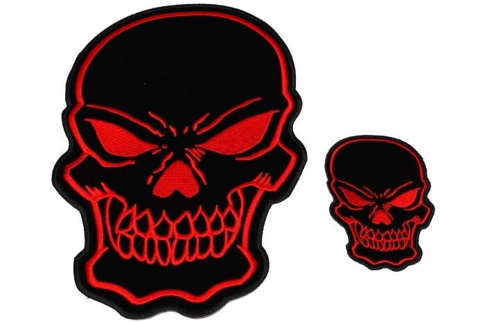 Red Skulls Small and Large set of 2 Patches - 4.25 - 11 inches