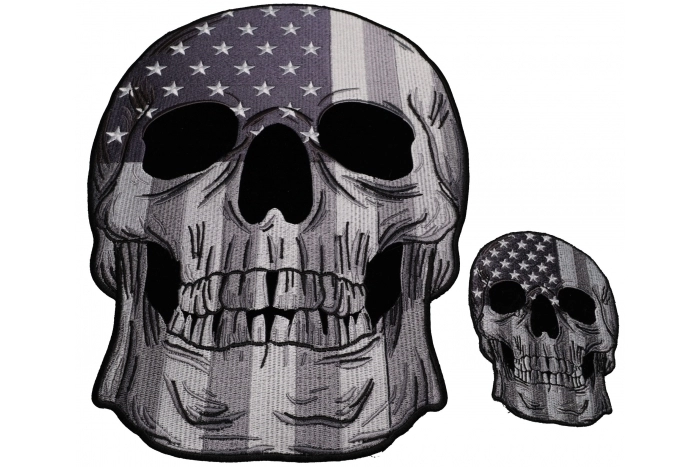 - Set of 2, 1 Small and 1 Large American Flag Skull Grayscale Patches