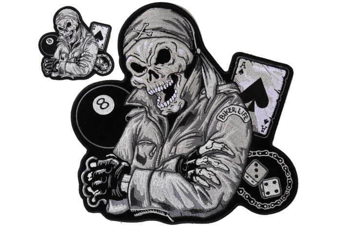 Set of 2 Small and Large Biker Skull Patches - 4 - 12 inches