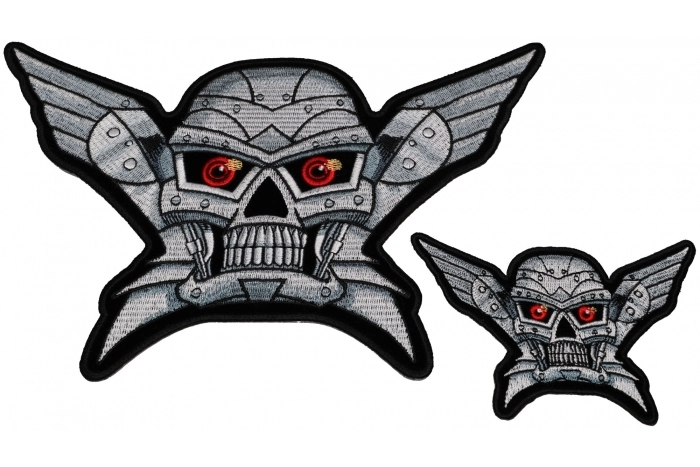 Set of 2 Small and Large Robot Skull Patches - 4.5 - 10 inches