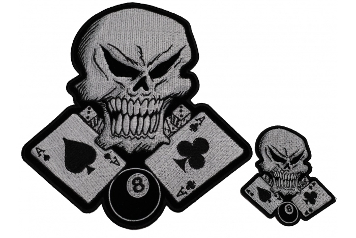 Set of 2 Small and Large Skull and Aces Patches - 3.8 - 10 inches