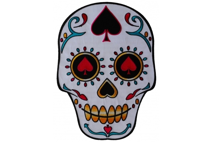 Sugar Skull Large Embroidered Iron on Patch - 7.25x10 inch