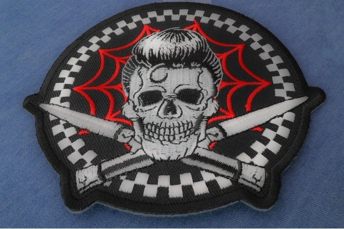 - Elvis Hair Skull, Web and Switchblades Patch