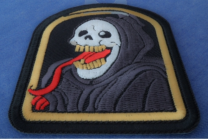 Tongue Reaper Patch Embroidered measures 2.4x3 inches and is Embroidered in Black / Gray. The patch can be sewn on to Leather Biker Jackets, Vests or Chaps. The patch can also be ironed on to Shirts, Hats or Denim material such as Jeans. Features plastic iron on backing and clean laser cut embroidered borders. Japanese made iron on glue requires temperature between 270-290 Degrees Fahrenheit. Use a heat press for 30 seconds to adhere the patch permanently to your clothing. Using a regular household iron will probably not be as permanent as one hopes. If possible we recommend you sew on your patches for a more durable application. Never iron on patches to Leather or Nylon materials.