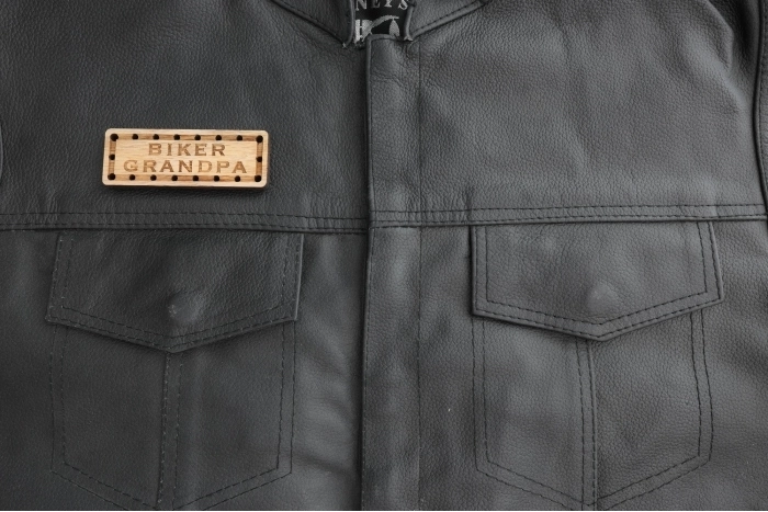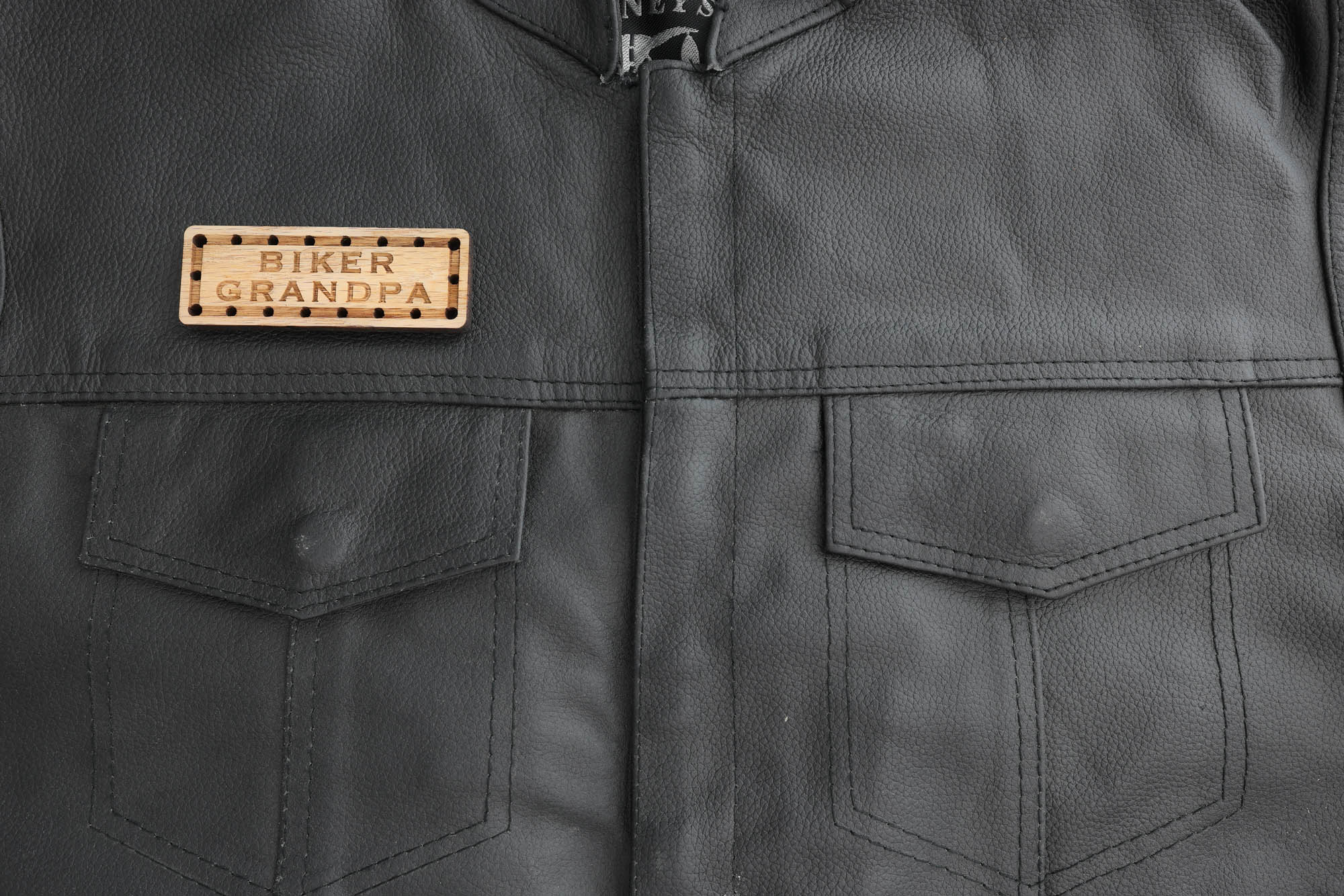 Biker Grandpa Oak Wood Patch - 3.5x1.25 inch