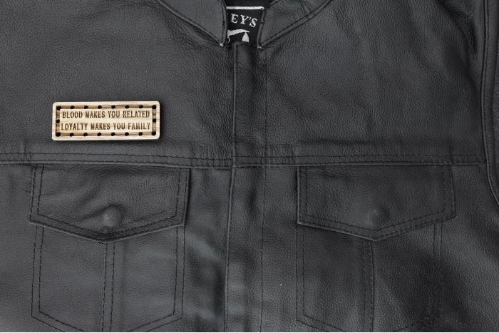 Blood Makes You Related Loyalty makes you Family Wood Oak Patch measures 3.5x1.25. Laser cut and engraved right here in Florida USA.