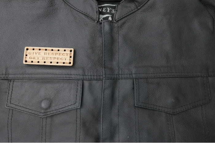 Give Respect Get Respect Oak Wood Patch measures 3.5x1.25. Laser cut and engraved right here in Florida USA.