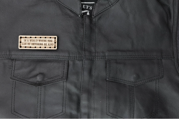 In a world where you can be anything be kind Wood Oak Patch measures 3.5x1.25. Laser cut and engraved right here in Florida USA.