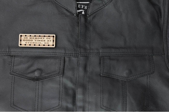In memory of good times at Sturgis SD Wood Oak Patch measures 3.5x1.25. Laser cut and engraved right here in Florida USA.
