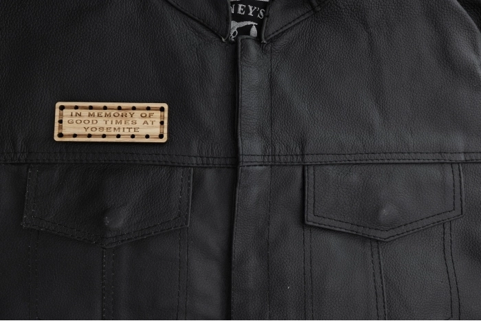 In Memory of Good Times at Yosemite Oak Wood Patch measures 3.5x1.25. Laser cut and engraved right here in Florida USA.