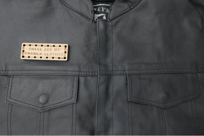 These are my Church Clothes Oak Wood Patch measures 3.5x1.25. Laser cut and engraved right here in Florida USA.