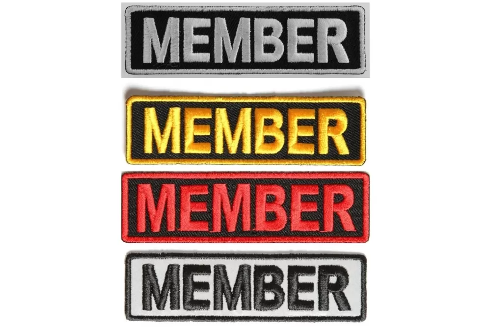 MEMBER Patches Embroidered In White Red Yellow Over Black and 1 Reflective Patch