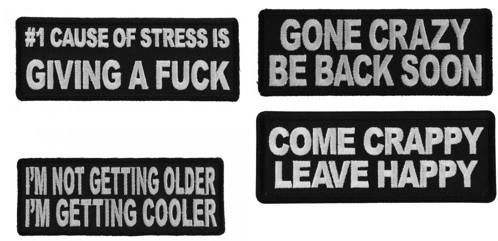 #NoStress Carefree Sayings Iron on or Sew on Embroidered Patches Set of 4