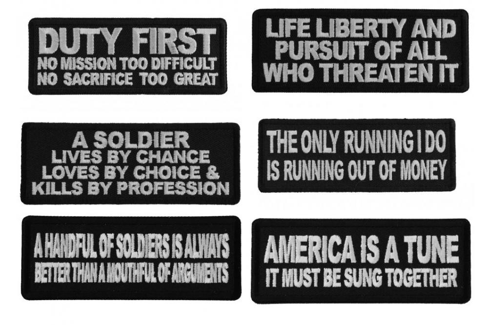 Salute: Patriotic Moral Sayings Iron on or Sew on Embroidered Patches Set of 6