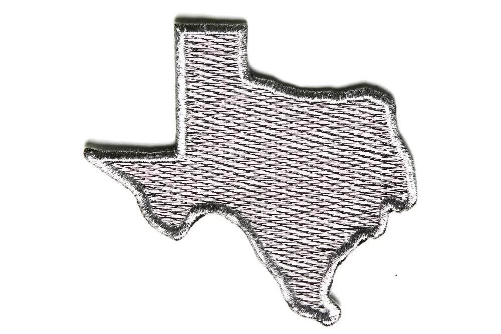 Silver Embroidered Texas Map Iron on Patch - 3x3 inch